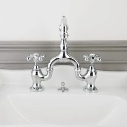 High Spout 8 Inch Bridge Lavatory Faucet – Porcelain Lever Handles
