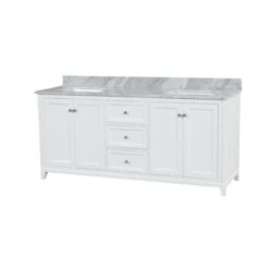 Atwell 72 Inch Modern Console Vanity With Oval Undermount Sinks – White