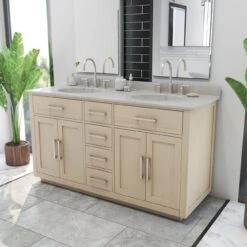 Barrett 60 Inch Oak Vanity With Oval Undermount Sinks – Light Oak