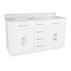 Barrett 60 Inch Oak Vanity With Oval Undermount Sinks – White
