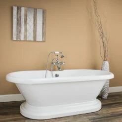 Bristol 62 Inch Acrylic Slipper Tub And Shower Package – White / Chrome Feet & Fixtures