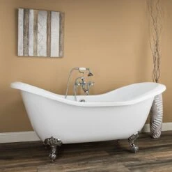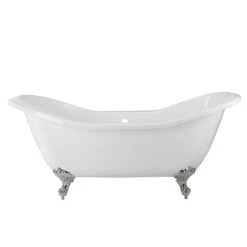 Serenity 72 Inch Acrylic Double Slipper Tub And Shower Package – White / Chrome Feet & Fixtures