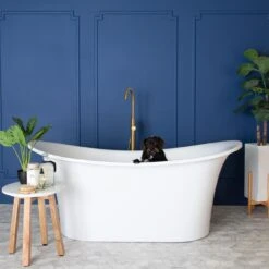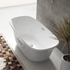 Dakota 68 Inch Cast Iron Slipper Bathtub – Continuous Rolled Rim – No Faucet Drillings – White