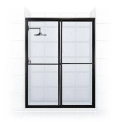 Newport 44 In. To 45-5/8 In. X 70 In. Framed Sliding Shower Door With Towel Bar In Matte Black And Aquatex Glass