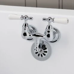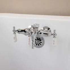 Clawfoot Tub Wall Mount Downspout Faucet With Porcelain Lever Handles For Riser Connection