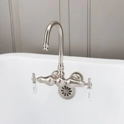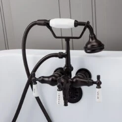 Clawfoot Tub Wall Mount Downspout Faucet With Handshower – Tub Drain And Supply Lines Complete Set