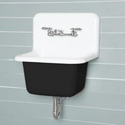 The 22-inch cast iron utility sink is perfect for small spaces. With its deep basin and high back design, this high back utility sink is right at home in the kitchen or the laundry room. The porcelain enamel and cast iron construction of this utility sink ensure quality, as well as a charming farmhouse vibe.