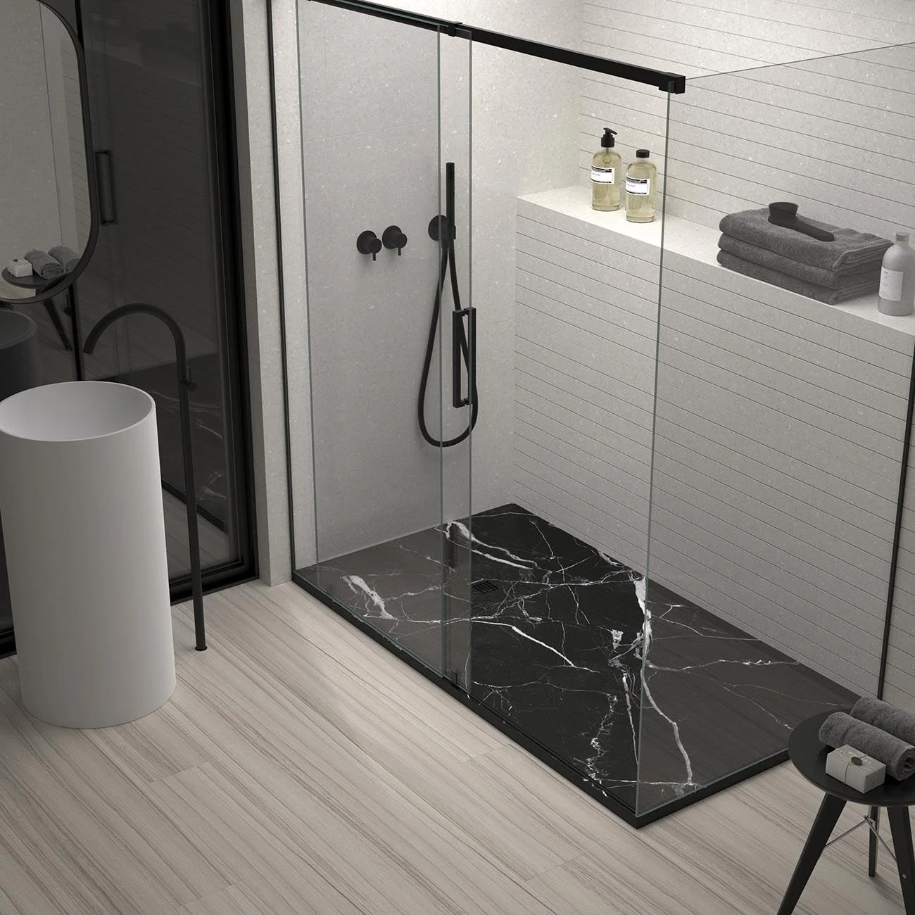 Update your master bathroom with a premium, custom engineered shower base. Constructed of a combination of natural and man-made materials, this black marble shower base is resistant to temperature changes, scratches, and impacts. Antibacterial properties prevent the growth of bacteria while the anti-slip gel coating ensures a comfortable and safe bathing experience.