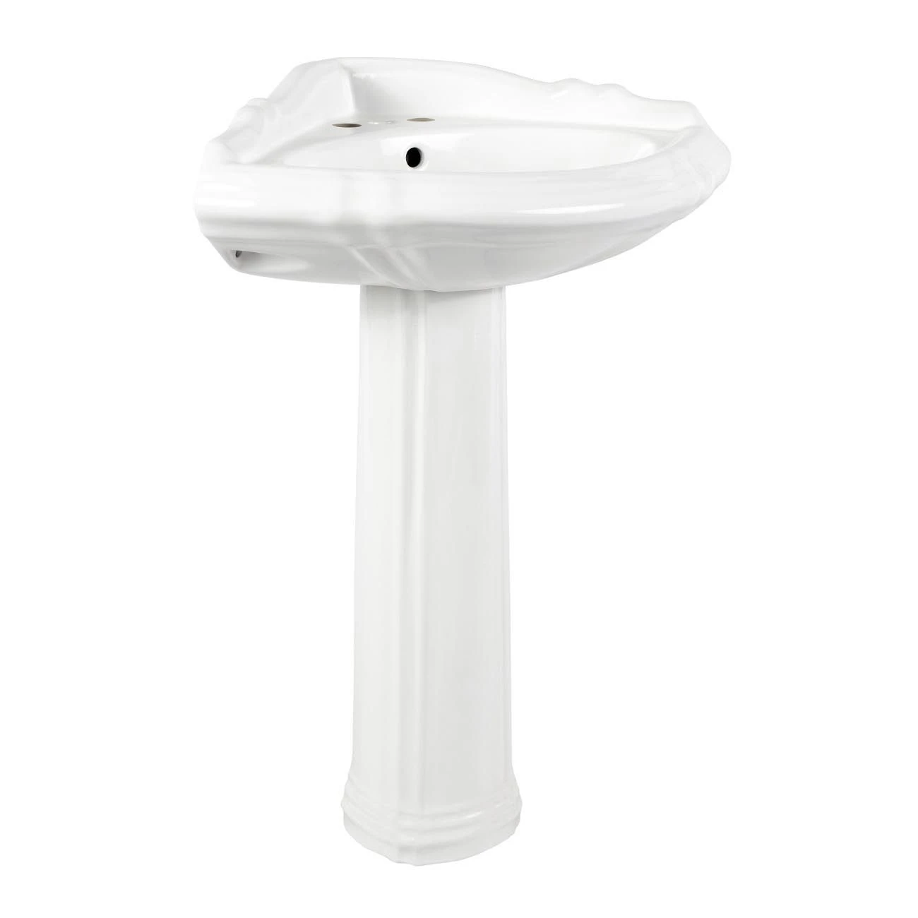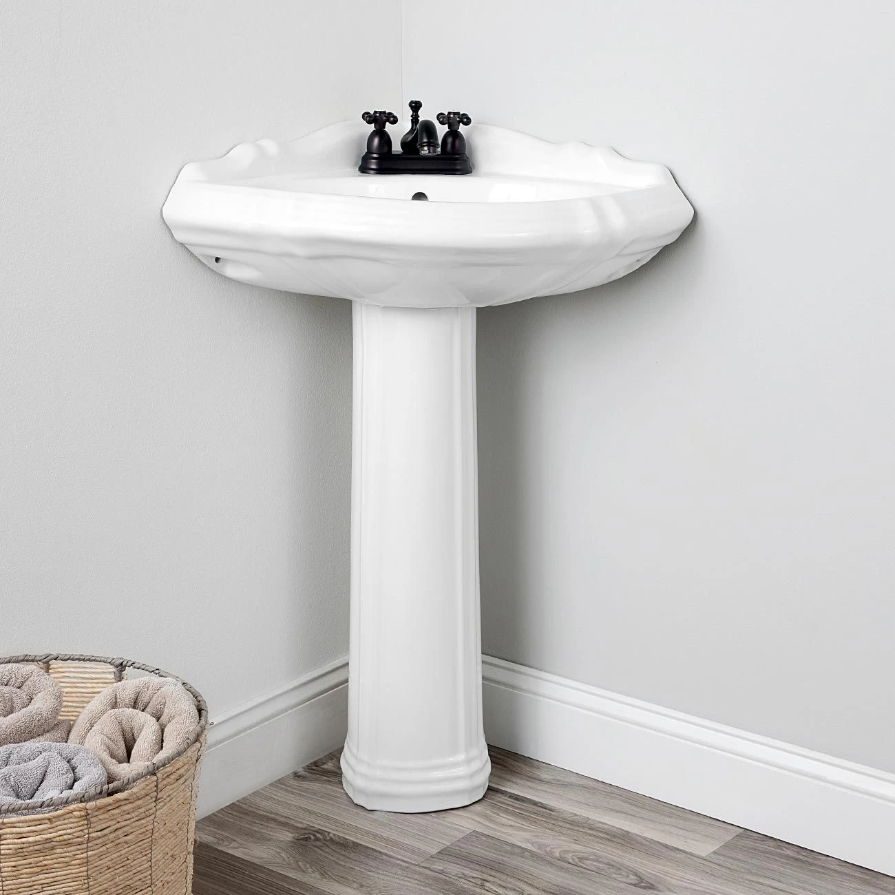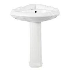 If you are looking for a small bathroom sink, this Randolph Morris 26-inch corner pedestal sink is the perfect solution. This bathroom corner sink is made of high-quality porcelain that can handle heavy wear and is assured to last. A white porcelain sink is the perfect finishing touch for any bathroom.