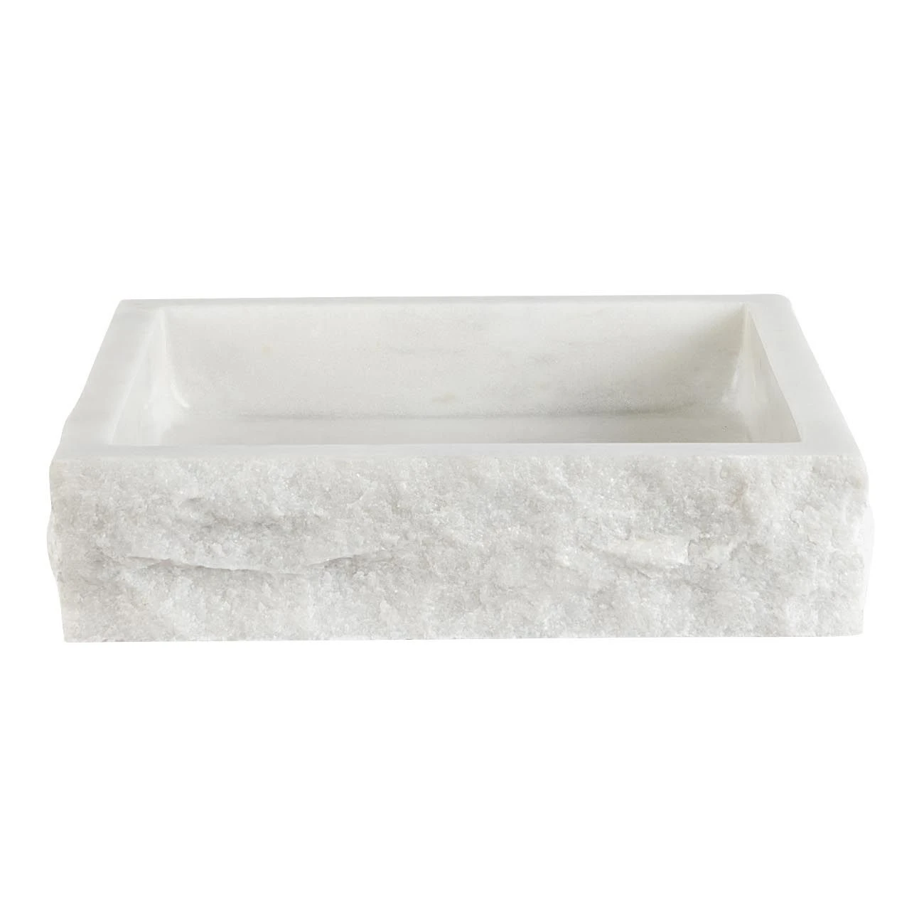 Made of natural, hand-carved marble, the Asher Vessel Sink is a one-of-a-kind addition to your master bathroom. Each sink features variations in color, shading, and veining, making it truly one of a kind. The chiseled exterior will stand out as a piece of artwork in your bathroom. Pair with a single post bathroom sink faucet to complete the look.