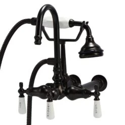 This telephone bathtub wall-mounted faucet is the perfect blend of form and function. Premium porcelain lever lettered handles add to the traditional design while a high arching gooseneck spout creates a lasting impression. Ceramic quarter-turn valves offer a smooth, drip-free operation while the premium finish is tarnish and corrosion-resistant.