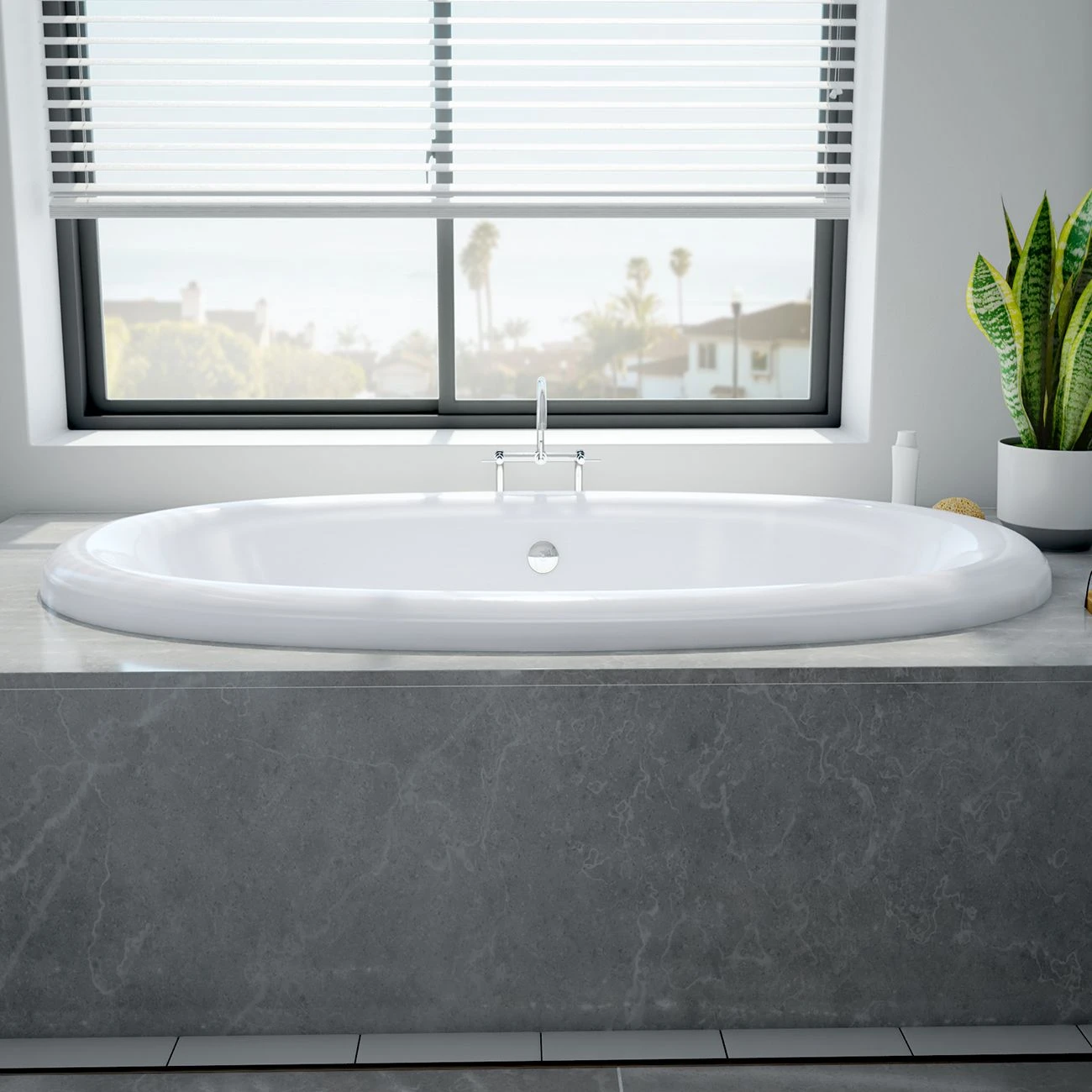 Designed with relaxation in mind, the Brigham Acrylic Double Ended Tub offers a generously spacious soaking area and gently sloped ends. This 72-inch tub is designed for drop-in installation, adding a touch of sophistication to any bathroom. The Brigham soaking oval tub is made from durable cast acrylic, creating a smooth, glossy surface that resists stains and scratches. Thoughtfully designed with a rear center drain, it optimizes functionality without sacrificing style. As part of our range of American-made goods, the Brigham drop-in tub ensures quality and enduring elegance.