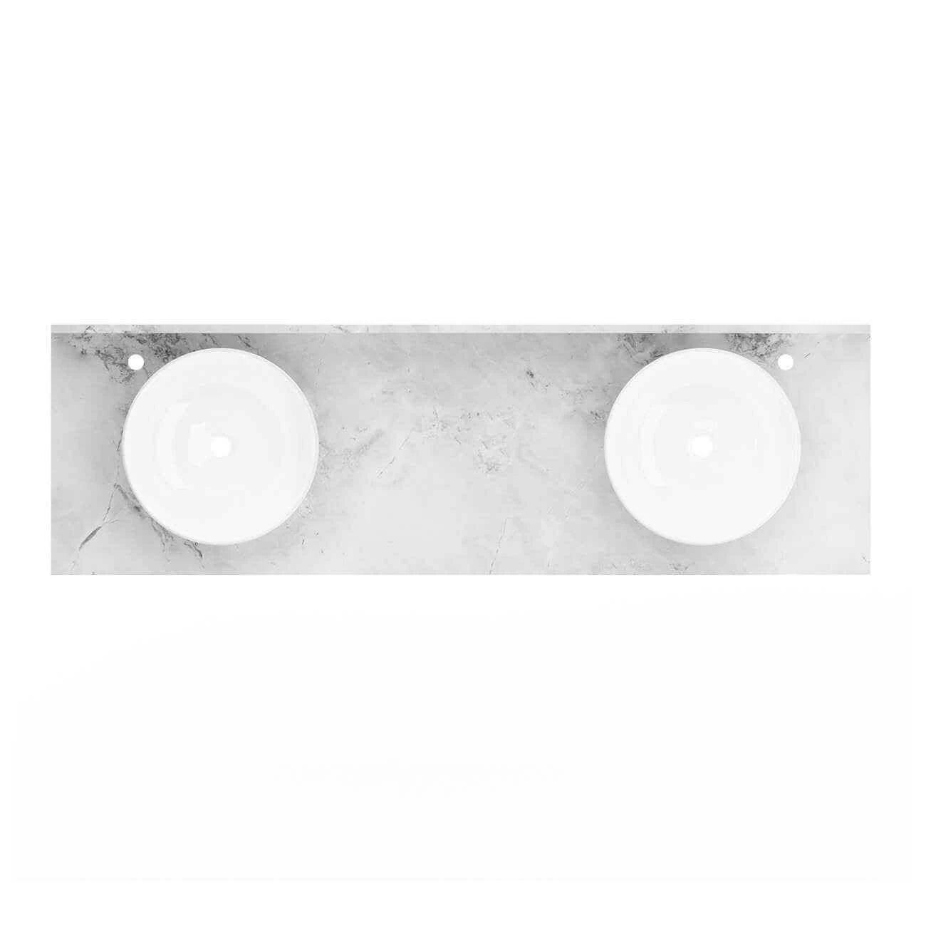 - Includes a matching backsplash and a white vessel porcelain sink