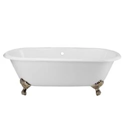 Make a statement with the gorgeous Cambridge Clawfoot Cast Iron Tub. Featuring detailed imperial ball and claw feet, this oval tub fits well in a variety of decorative themes, from traditional to contemporary. The cast iron material traps heat in the water, keeping your bath comfortably warm. This compact 60-inch clawfoot tub also fits comfortably in most bathrooms.