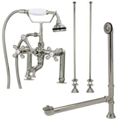 - Set includes: Clawfoot Tub Faucet with Hand Shower, Lift and Turn Tub Drain, and Straight Supply Lines with Shut Off Valves