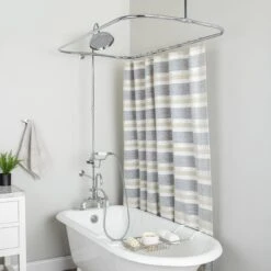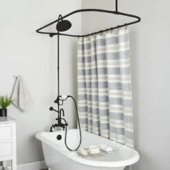Turn your clawfoot tub into a shower with a Randolph Morris Deck Mount Shower Enclosure. It comes with everything you need, including a clawfoot tub faucet, enclosure ring and supports, riser pipe, handshower and riser mounted cradle, handshower diverter, and showerhead. This clawfoot tub shower enclosure is the perfect balance of functionality and form for your bathroom.