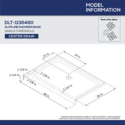 - Single threshold SlimeLine shower base is designed for alcove installation