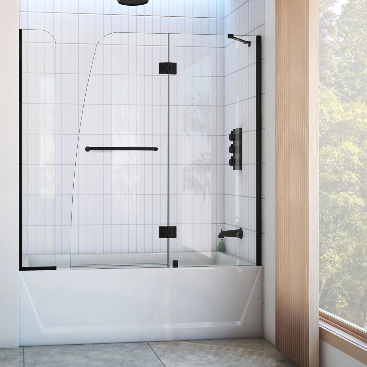 The DreamLine Aqua is frameless shower or tub screen with European appeal and modern architectural design. With a stunning curved silhouette that creates an open, inviting feel, the Aqua will transform your bathroom with elegant style to match its functionality. The Extender Panel provides additional splash coverage. Turn the style in your bathroom space up a notch with the Aqua Tub Door with Extender Panel.