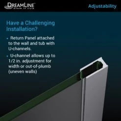 - U-channel allows up to 1/2 in. adjustment for width or out-of-plumb (uneven walls)
