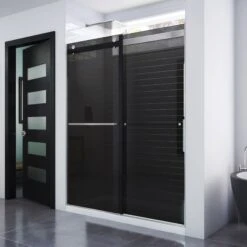 - Double sliding bypass configuration allows entry to the shower from left or right side