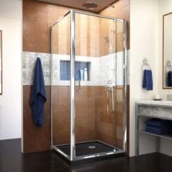 The DreamLine Flex pivot shower enclosure and SlimLine base kit offers modern appeal at a budget friendly price point. The versatile Flex model combines cutting-edge pivot hardware, simple installation and dependable performance. Complete your bathroom with the elegant and innovative look of the Flex shower enclosure and SlimLine base kit from DreamLine for the complete solution for your shower project.