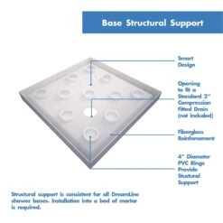 - SlimLine Shower Base: Low profile threshold design for easy entry and exit