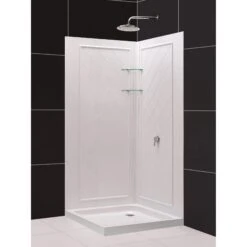 - Kit includes: Flex Shower Enclosure, SlimLine Shower Base, and Q-wall Backwall