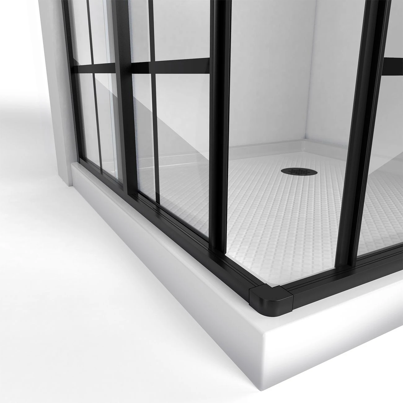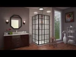 The DreamLine French Corner sliding shower enclosure is a perfect complement to a modern industrial bathroom style with a European vibe. The French Corner is designed for a corner installation providing an effective solution to maximize space. The four panel configuration includes two corner-opening sliding doors to create a spacious center walk through. JetGlaze glass pattern offers a unique mullion look without the metal framing for easy maintenance. Update the style in your bathroom with the French Corner sliding shower enclosure.