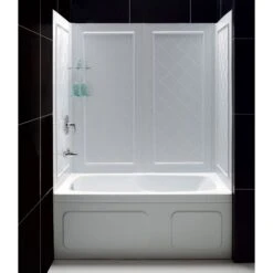 The DreamLine Infinity-Z tub door and Qwall Wall Kit offers a beautiful solution for a bathroom remodeling project. The Infinity-Z will transform your bathroom with a beautiful balance of functionality, elegance and sophistication. A variety of finishes and glass options will match any bathroom decor. The Qwall Wall Kits complete the look with a low profile design for a sleek modern look. Choose the DreamLine Infinity-Z Kit for the ultimate solution to your shower project.