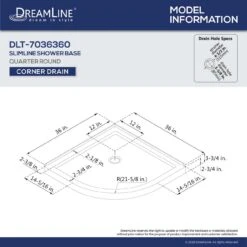 - SlimLine Curved Neo Round Shower Base: Low profile threshold design for easy entry and exit
