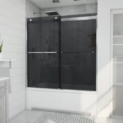 The DreamLine Sapphire is a semi-frameless sliding bypass shower or tub door with a modern, elegant design and a striking look. The Sapphire features thick tempered glass, convenient dual towel bars and sleek rollers for smooth gliding action. Integrated vinyl stoppers offer glass safety and operational security for the Sapphire. DreamLine exclusive ClearMax water and stain resistant glass coating provides superior protection from buildup and easy maintenance. Turn your shower space into a gem with the Sapphire shower door!