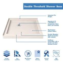 DreamLine SlimLine 36 Inch D X 36 Inch W X 2-3/4 Inch H Corner Drain Double Threshold Shower Base