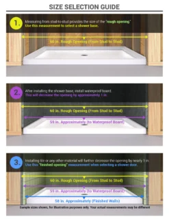 - IMPORTANT! All measurements should be taken only AFTER walls are finished (tile, back walls, etc.)