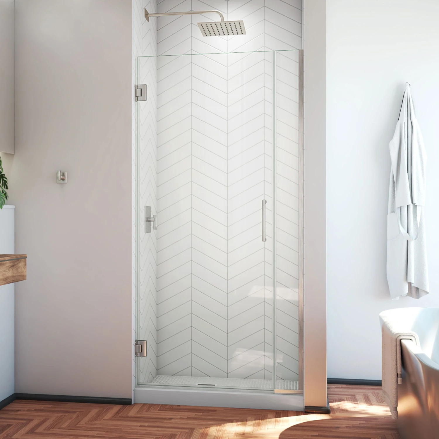 The DreamLine Unidoor Plus is a frameless hinged shower door or enclosure that is perfectly designed for today’s contemporary trends. With modern appeal and sleek clean lines, the Unidoor Plus adds a touch of timeless style to any bathroom space. DreamLine exclusive ClearMax water repellant and stain resistant glass coating adds superior protection from stains and is nearly maintenance-free. Unidoor Plus is part of the DreamLine Unidoor collection, the most versatile line of shower doors and enclosures on the market. Whatever your needs, DreamLine has the ultimate solution for your shower project!