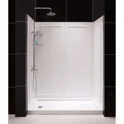 - Hardware Finish: Chrome; Base & Backwall Color: White; Center Drain (Centered on width only, see technical drawing for exact drain location)
