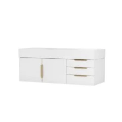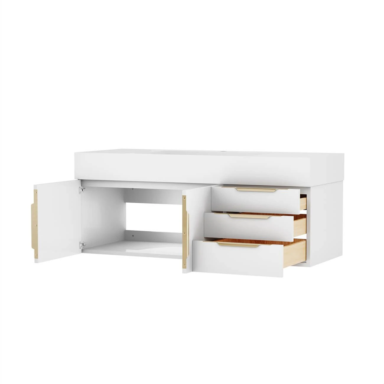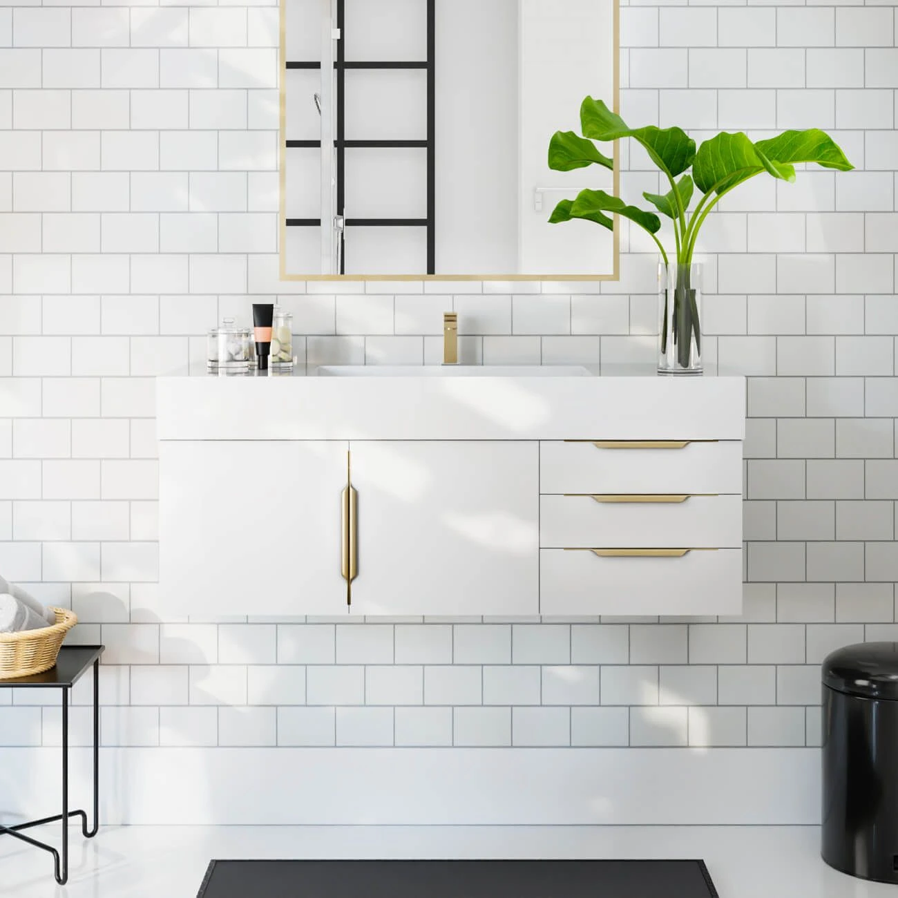 - Includes brushed brass hardware
