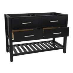 Upgrade your master bathroom with the Everett 48-Inch Console Vanity. Featuring two slow-close drawers, brushed nickel hardware, and a solid frame constructed from birch and oak frame. The slotted shelf underneath the vanity is perfect for storing bathroom essentials. Pair with one of our LED mirrors and your favorite bathroom sink faucet.
