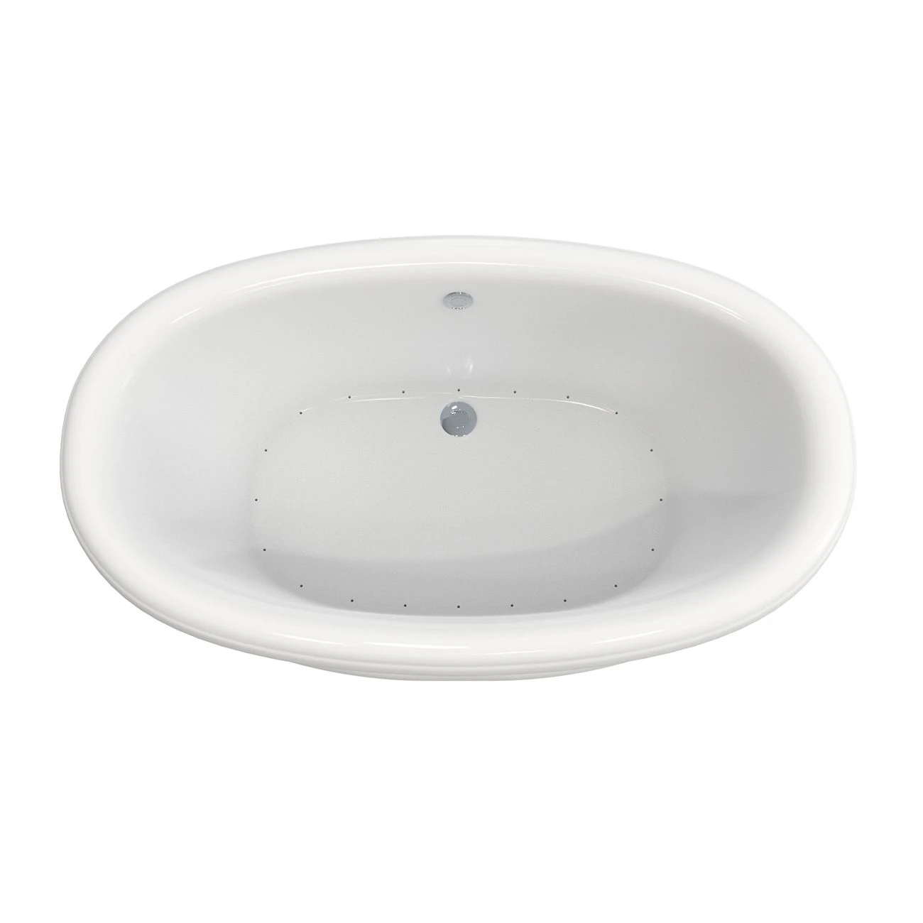 Transform your bathroom into a personal spa with the Everett Air Massage Tub. This American-made freestanding tub, extends to a comfortable 66 inches and boasts a premium high-gloss finish, ensuring beautiful style and easy cleaning. Designed as an acrylic double-ended tub with a rear center drain, the Everett redefines comfort and appeal. This unique air massage tub is lined with air injectors and includes wave and pulse settings, promising to elevate every soak. With its elegant oval shape, the Everett turns your bathtub into a relaxing retreat.