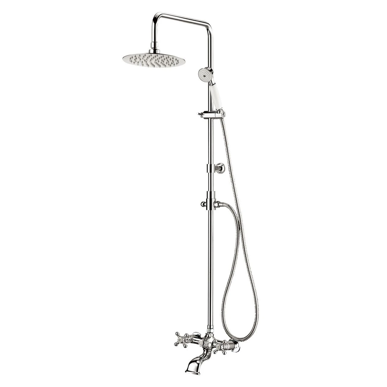 Vintage and contemporary styles blend seamlessly in this exposed wall mount shower faucet from Randolph Morris. Resilient, solid brass construction is styled in corrosion-resistant finishes to complement any design style. The included hand shower adds convenience, and ceramic quarter-turn valves ensure smooth, drip-free operation.