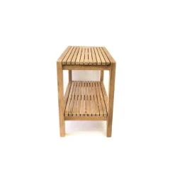 The beautiful Fiji Shower Bench with narrow teak wood slats and slim legs creates a slick look that complements modern or classic showers. Unlike built-in or tile shower benches, this teak shower bench will never be cold to the touch, making it perfect to use in the shower.