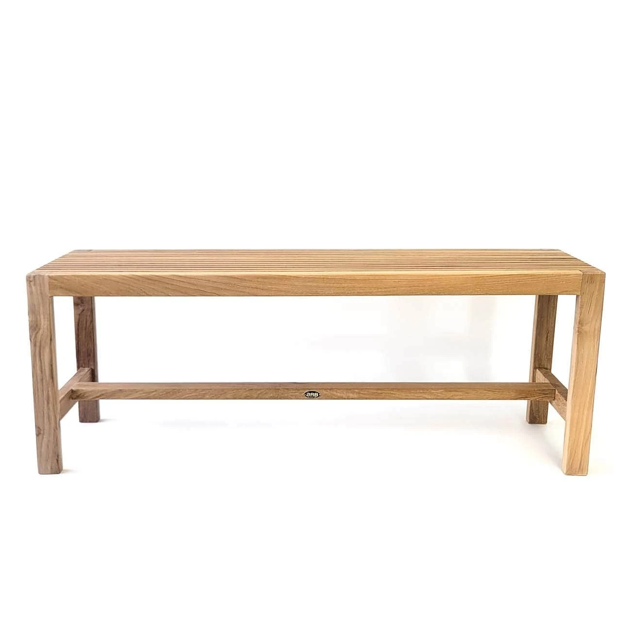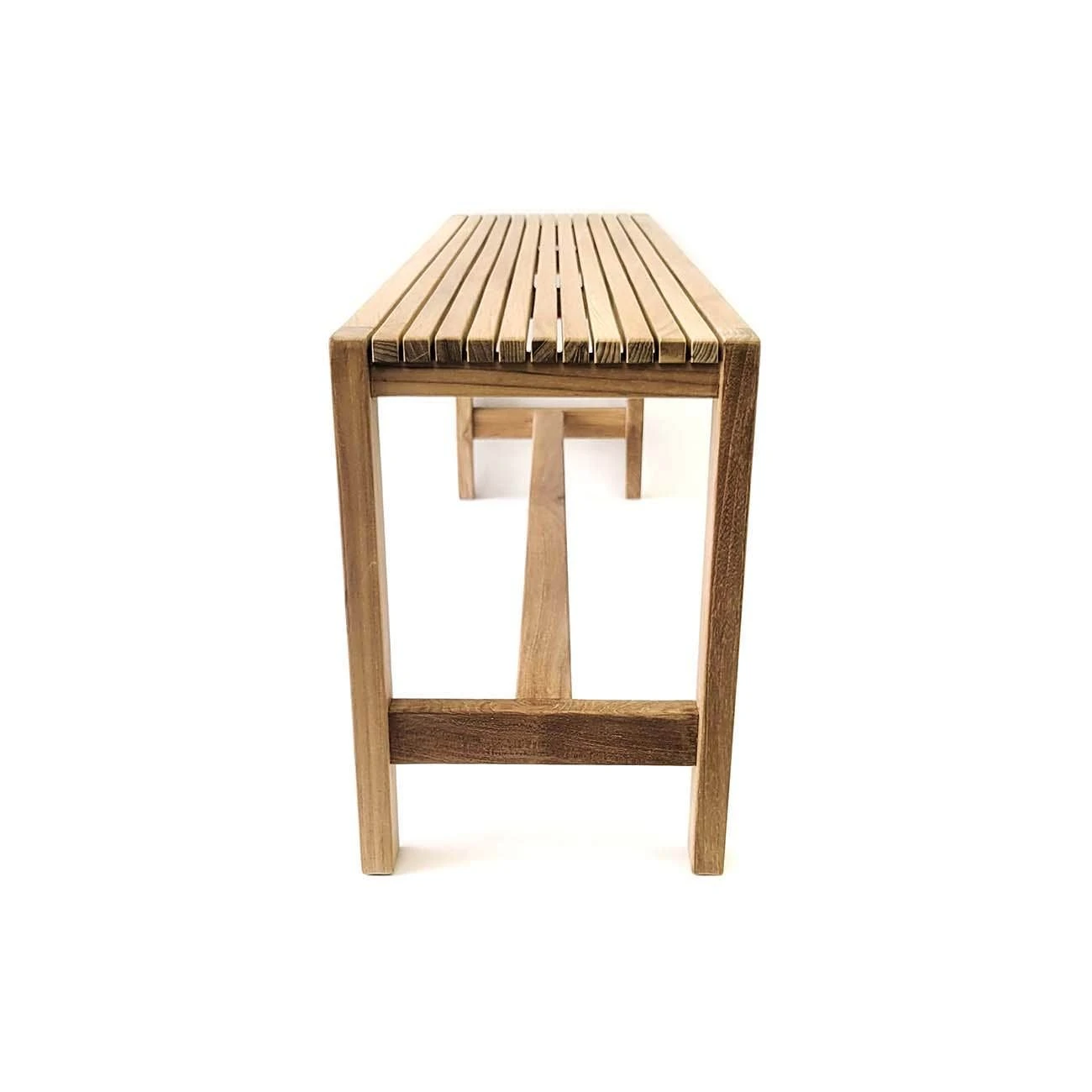 The beautiful Fiji Shower Bench with narrow teak wood slats and slim legs creates a slick look that complements modern or classic showers. Unlike built-in or tile shower benches, this teak shower bench will never be cold to the touch, making it perfect to use in the shower.