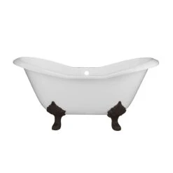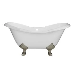With its gently sloped ends, the Grace Cast Iron Clawfoot Tub has a double slipper design for a luxurious soak at either end of the oval tub. Resting upon elegantly detailed lions paw feet, this cast iron clawfoot tub is the perfect addition to your master bathroom. Whether you’re a connoisseur of unique tubs or are just curious about vintage home decor, this double-slipper tub is a must-see.