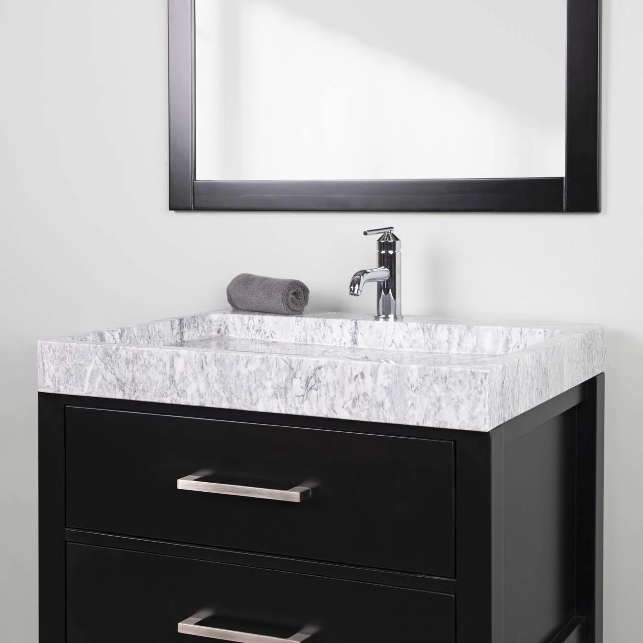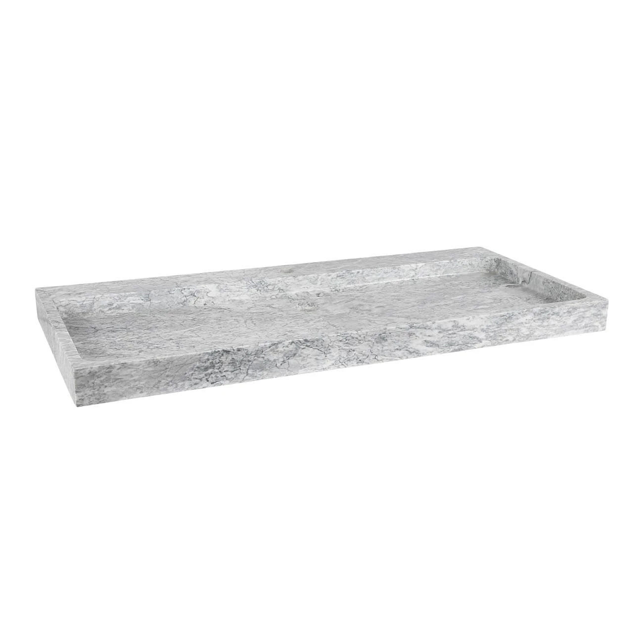 The Hannah Vessel Sink offers a sleek, modern design. Hand-cut from solid White Carrera marble, each sink features variations in color, shading, and veining. While the basin appears flat, it features a gentle slope, allowing water to flow freely to the drain. Pair with a vessel sink faucet to complete the look.