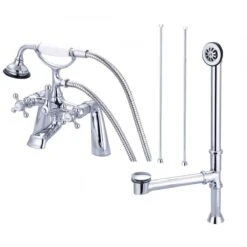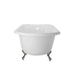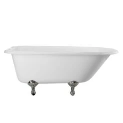 The Heritage Cast Iron Clawfoot Tub Package is one of our most popular classic tub packages. Featuring a porcelain interior and smooth white finish resting on chrome ball and claw feet, this classic roll tub bathtub will add charm to a traditional bathroom. The British telephone faucet in chrome is a classic touch, as well as its spacious 54 gallon capacity for long soaks.