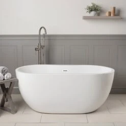 Experience minimalist elegance with the Hudson Acrylic Bathtub from Randolph Morris. The double ended design of this contemporary freestanding soaking tub ensures uncompromising comfort no matter which end you choose to lounge in. This oval tub has a unique faucet-hole-free design that allows for customization of a freestanding faucet that aligns with your bathroom aesthetics. Bring home the Hudson modern freestanding tub for an enhanced bathing experience.
