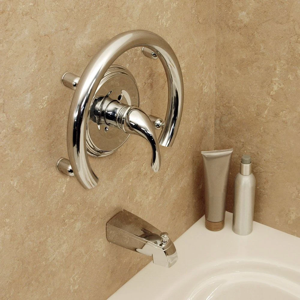 - A unique and incredibly solid handrail designed to contour circular shower fixtures and provide support when accessing the controls