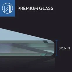 - Shower door features clear tempered glass panels