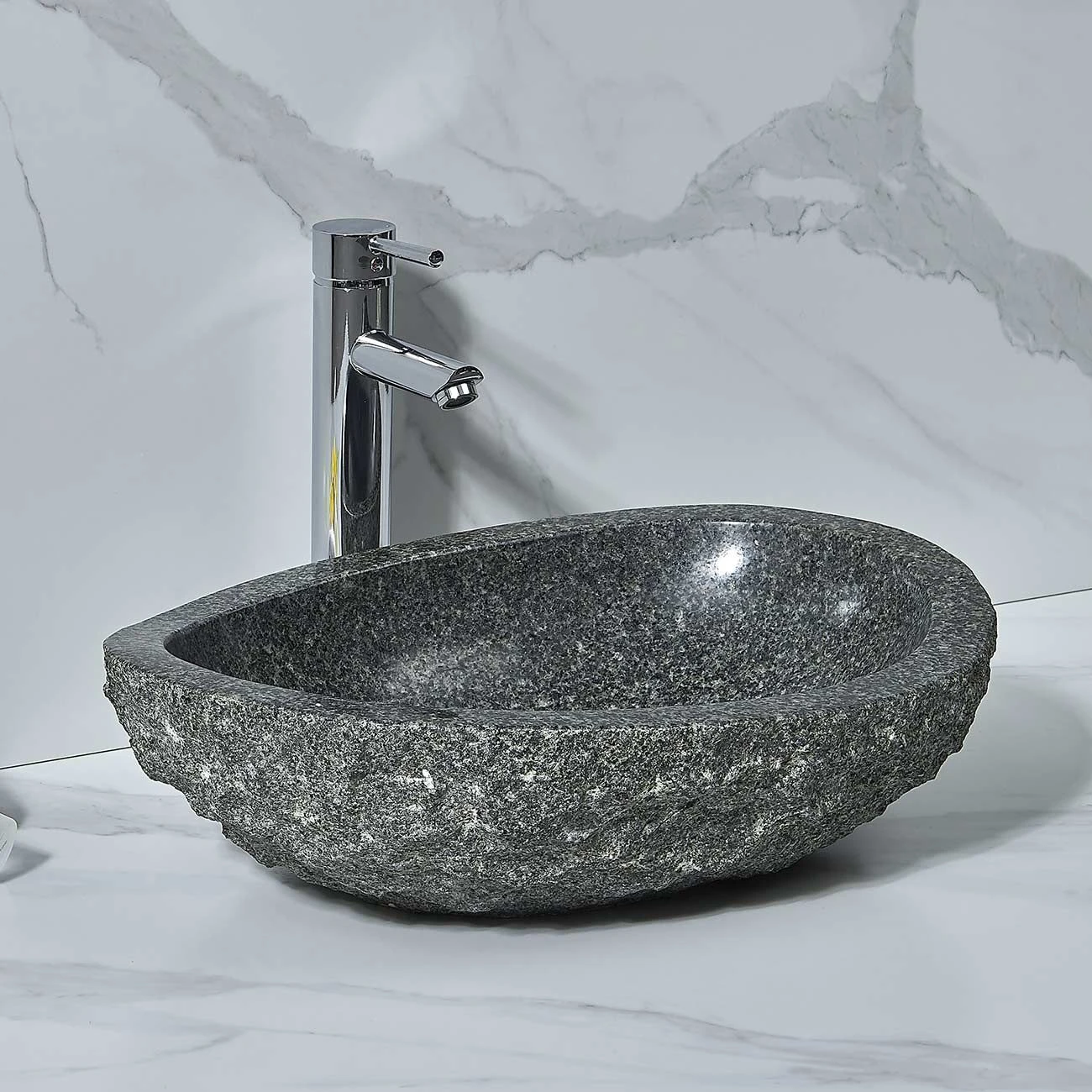 The natural look of this hand-carved granite vessel sink will be a striking focal point in your bathroom. Each sink offers a unique, chiseled design, guaranteed to enhance the beauty of your bathroom vanity.