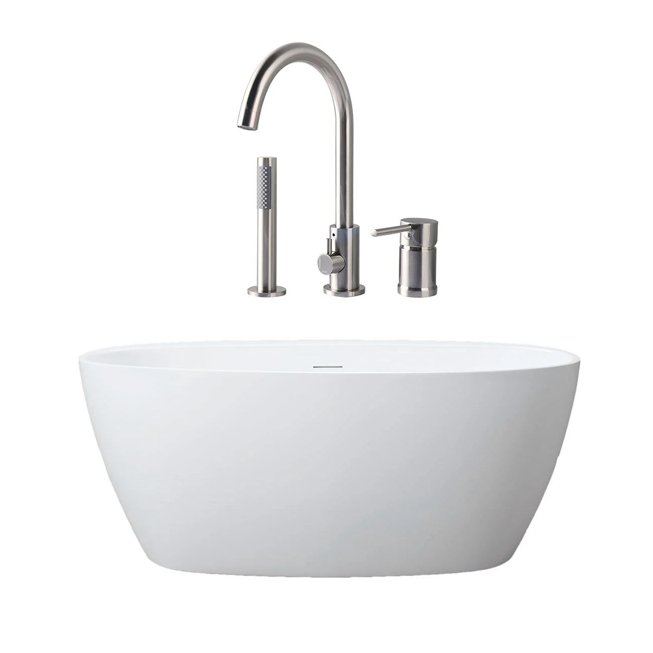 - Package includes: Luna Matte White Acrylic Double Ended Freestanding Tub Package and>Contemporary Deck Mount Tub Faucet with Handshower