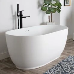 Transform your bathroom into a soothing sanctuary with the Randolph Morris Mindy Freestanding Double Ended Tub. With its elegant curves and contemporary finish, this matte white tub creates a beautiful focal point in any modern bathroom. The Mindy has a classic oval shape with a spacious interior that offers a truly immersive and relaxing soak. With a center drain, this acrylic tub not only offers convenience, but also maintains its brilliant finish year after year.
